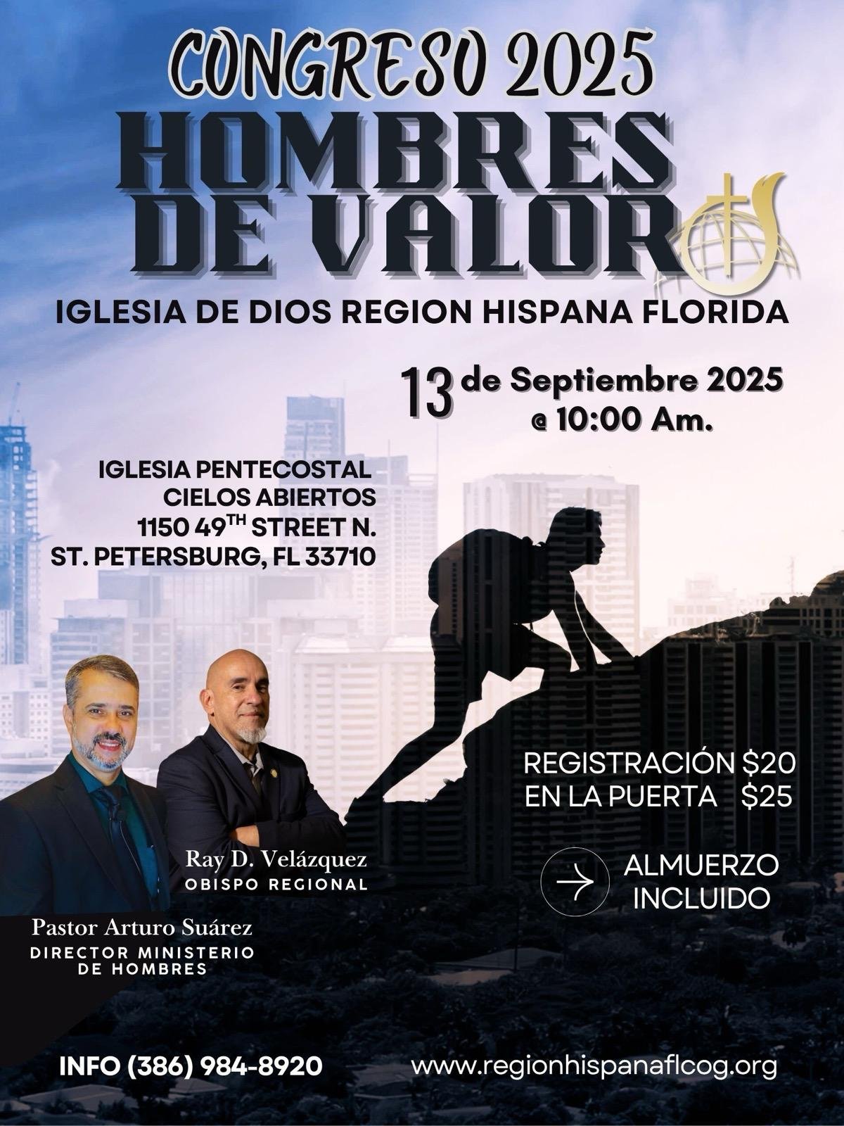 ¡Ya esta aqui el Congreso anual de Hombres de la Iglesia de Dios Region Hispana Florida "Hombres de Valor" — un tiempo inolvidable de adoración, Palabra y comunidad para los hombres de valor.